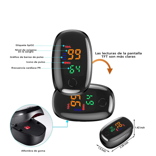 Pulsioximetro, Oxímetro de dedo,mide el pulso y la saturación de oxígeno